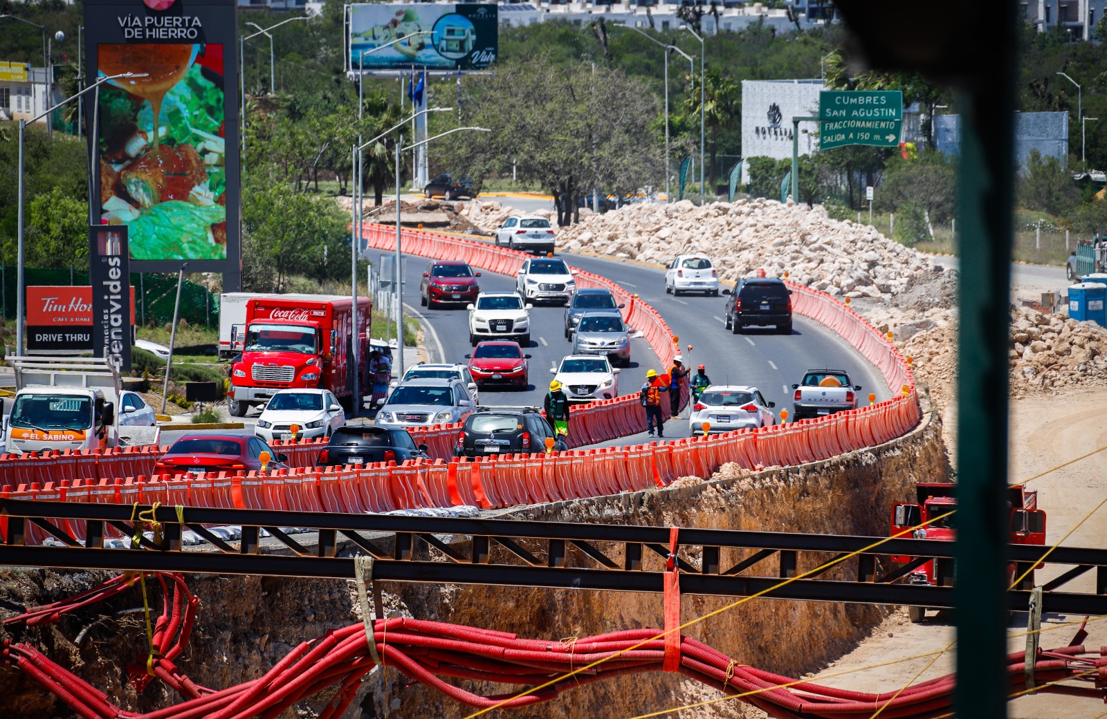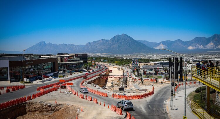En las vialidades cercanas a la construcción, el Gobierno de Monterrey mantiene un operativo compuesto por unos 30 promotores de Movilidad y oficiales de Tránsito para agilizar la circulación vehicular.