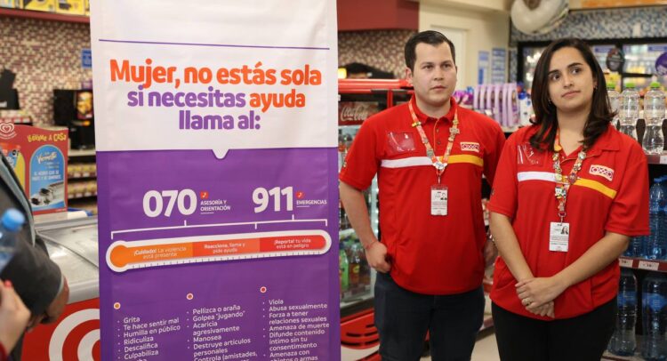 El programa que tiene por objetivo erradicar la violencia contra la violencia y están concientizando sobre el daño tan grave que genera la violencia, contempla la colocación en oxxos de mantas que contienen información para las personas afectadas por este mal.