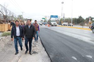 Como parte de los trabajos complementarios que se están realizando antes de la inauguración de una gran obra pluvial que beneficiará a miles de vecinos de diferentes colonias de Juárez, el Alcalde Francisco Treviño Cantú acudió a supervisar labores de recarpeteo en la Carretera a Reynosa, a la altura del sitio conocido como Las Tarimeras.