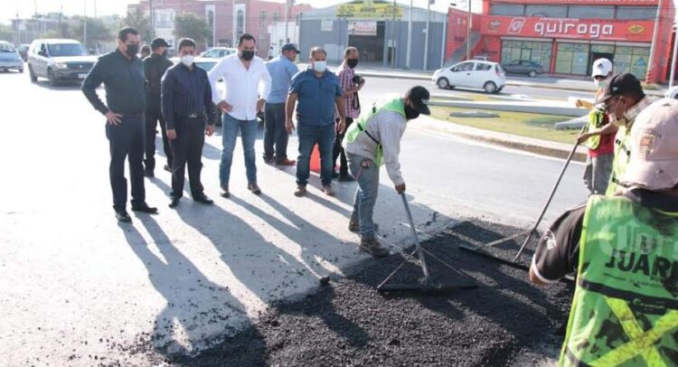 Durante una supervisión de trabajos que realizaba la Secretaría de Servicios Públicos en las calles Bernardo Reyes y Garza Ayala, del centro del municipio, y en la Avenida Teófilo Salinas, el Alcalde reafirmó su decisión de mantener un programa permanente de bacheo para mejorar las vialidades de Juárez.