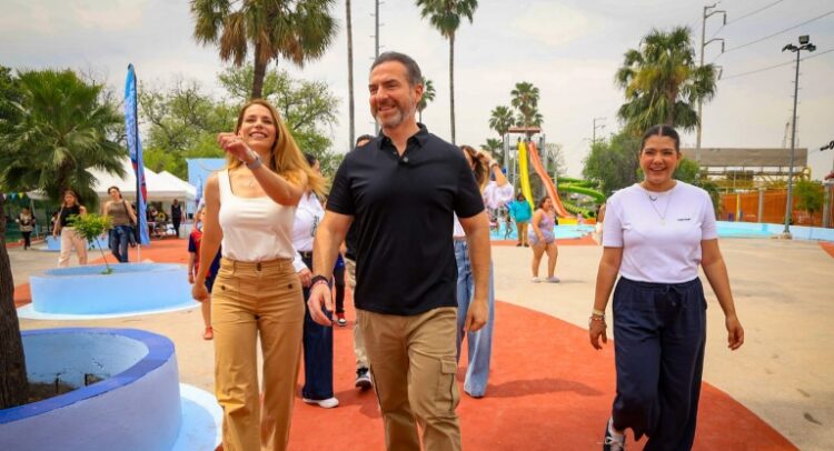 El alcalde de Monterrey, Adrián de la Garza, acompañado por su esposa Gaby Oyervides, presidenta del DIF municipal, encabezó este domingo la apertura de la Temporada Acuática 2025 en el Parque España.