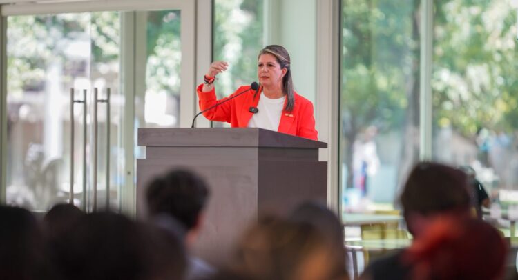 La candidata contestó preguntas y al final, alumnos y alumnas se acercaron a ella para expresar sus inquietudes y conocer un poco más de las propuestas que llevará al Senado.