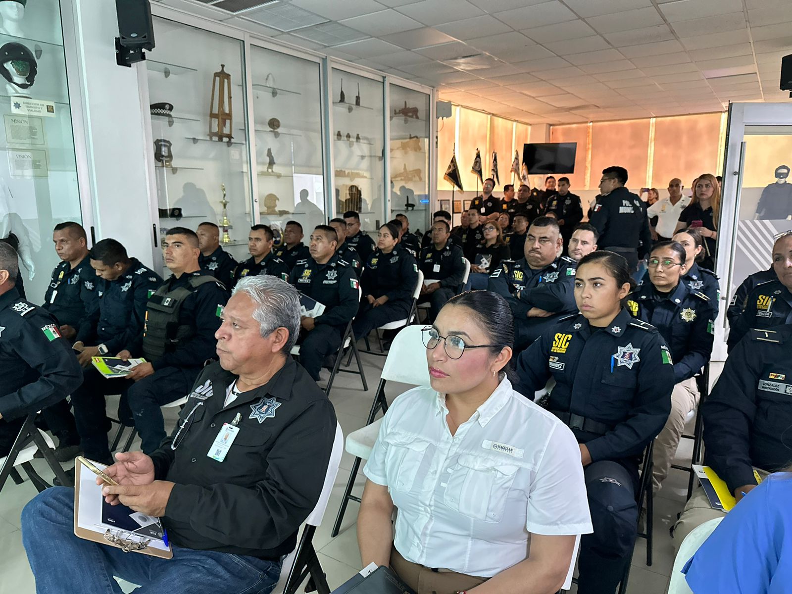 La capacitación se realizó en las instalaciones de la corporación policiaca donde estuvieron presentes el Secretario de Seguridad Marco Antonio Zavala Solís, directores y coordinadores de las diferentes áreas, así como comandantes de zona y de sector.