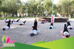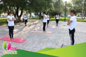A esta actividad asistieron la Directora del Sistema DIF, la C. Verónica González de León y la Directora del Instituto Municipal de las Mujeres, la C. Rosario Carrasco López, para saludar a las alumnas que realizaron las distintas posiciones del yoga “Hata”.