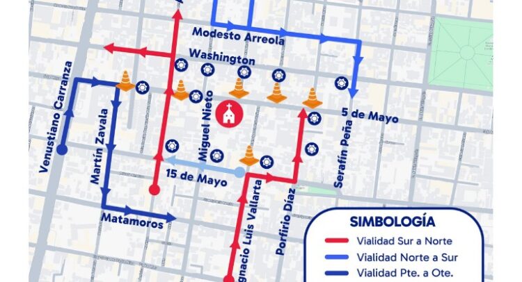 Los primeros cierres se aplicarán en 5 de Mayo y Corona. Se restringirá la circulación en Vallarta, entre 5 y 15 de Mayo; en 5 de Mayo, y entre Miguel Nieto y Vallarta, por donde está la entrada principal de la parroquia.