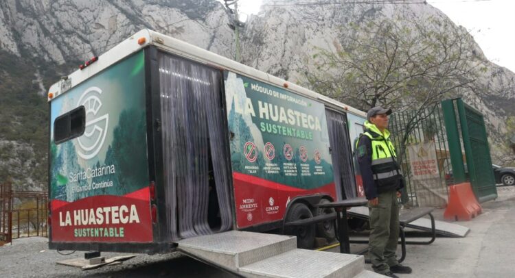 Jorge Cervantes, titular de la Secretaría de Economía y Turismo e Israel Contreras, director de Protección Civil, informaron que a través de un módulo de información, ubicado en la entrada de La Huasteca, se brindan ciertas recomendaciones sobre las rutas permitidas a senderistas, escaladores, corredores y ciclistas.