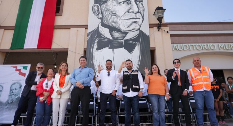 El Alcalde Félix Arratia marcó el inicio del Desfile en el que participaron también atletas destacados del Municipio y las diferentes escuelas, desde Jardines de Niños hasta Preparatorias.