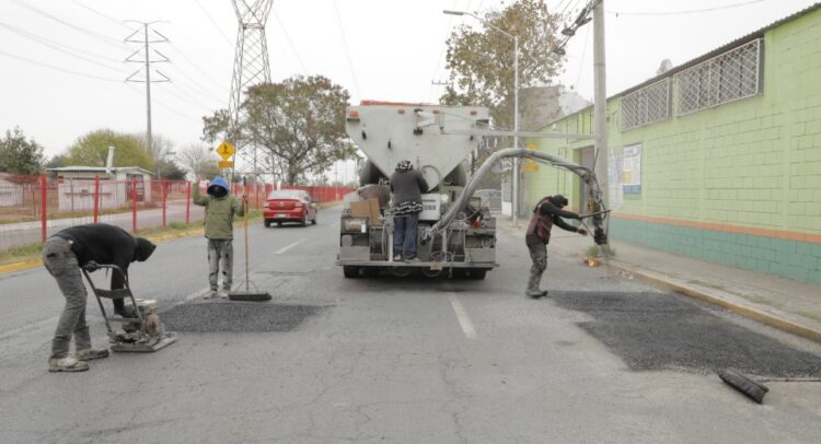 Este viernes, personal de la Secretaría de Servicios Públicos se desplegó por diversas zonas de Escobedo para de forma simultánea dar mantenimiento a la carpeta asfáltica dañada y dejarla en óptimas condiciones.