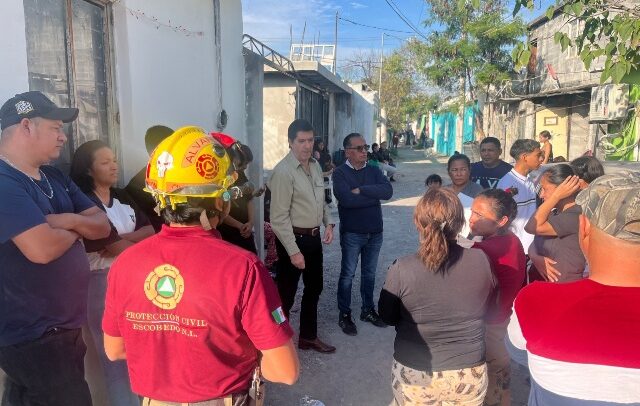 Canales Rodríguez dialogó con las familias mientras brigadistas de Protección Civil de Escobedo acordonaron la zona y dieron recomendaciones a los afectados para evitar estar en el lugar.