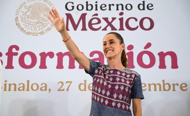 La Jefa del Ejecutivo puntualizó que, además, en materia de seguridad, desde el Gobierno de México se apoya al Gobierno de Sinaloa y a su pueblo con la visita cada 15 días del Gabinete de Seguridad y la implementación de la Estrategia Nacional de Seguridad a través de sus cuatro ejes, la cual aseguró “estamos convencidos de que va a funcionar”.