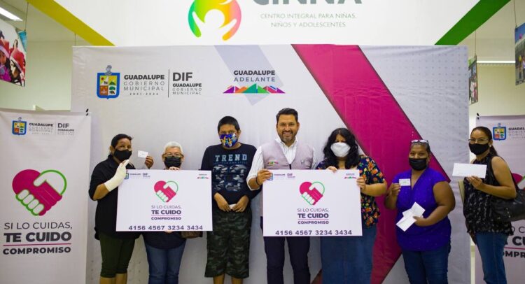 Al continuar con el programa “Si lo cuidas, te cuido”, tanto la Alcaldesa Cristina Díaz y el Presidente de DIF Guadalupe, Tomás Montoya, entregaron las tarjetas electrónicas con 700 pesos de saldo mensual a los beneficiados.