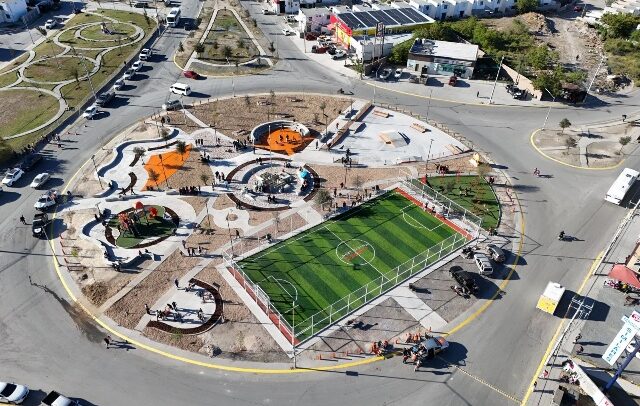 El nuevo Espacio de Unidad cuenta con una cancha de 650 metros cuadrados, protegida con 4 metros de reja de triple nudo, así como 250 metros de banquetas. También se instalaron juegos infantiles, aparatos de ejercicio, mesas de picnic, mobiliario urbano y un área de pasto sintético para reducir riesgos de accidentes.
