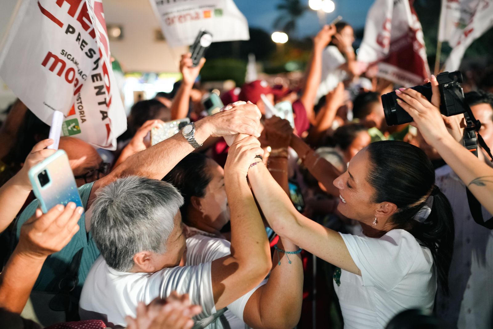 Por otra parte, Claudia Sheinbaum enfatizó en que, de la mano del candidato de la 4T a gobernador del estado, Joaquín “Huacho” Díaz Mena, Yucatán tendrá un nuevo comienzo con la iniciativa ‘’Renacimiento Maya’’, la cual tiene como objetivo el desarrollo de Puerto Progreso; ampliación del Tren Maya hasta Puerto Progreso, así como su consolidación como un tren de carga; construcción de parques industriales, la entrada de gas natural; impulso de las plantas de ciclo combinado para la generación de electricidad construidas por el Presidente Andrés Manuel López Obrador; construcción del anillo metropolitano para Mérida, entre otras acciones que catapultarán el desarrollo de la entidad.