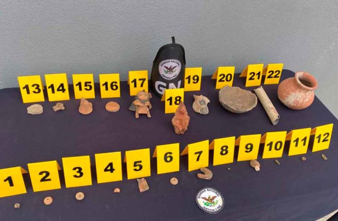 Elementos de la Guardia Nacional interceptaron ayer 22 piezas arqueológicas en el Aeropuerto Internacional de San Luis Potosí. El paquete provenía del Estado de México y tenía registrado como destinatario un domicilio en Coahuila.