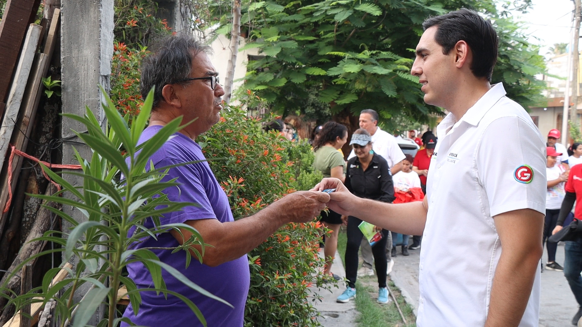 Acompañado de Andrés Cantú y de Gaby Govea, candidatos a Diputado federal por el distrito 2 y Diputada local por el distrito 5, respectivamente, Garza Arredondo recorrió las calles de las colonias Casas Reales y Burócratas Municipales, en donde presentó sus propuestas de campaña.