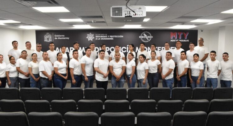 Un grupo de 34 cadetes, 20 hombres y 14 mujeres, ingresaron este viernes a la Academia de Policía de Monterrey.