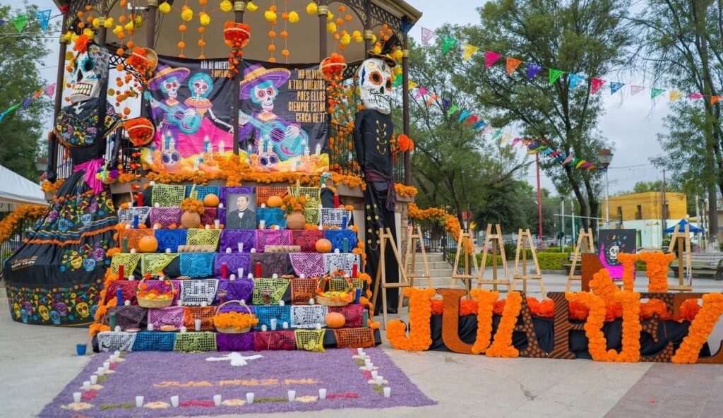 Con un altar en honor a Benito Juárez junto al kiosco de la plaza principal, un desfile de catrinas y presentaciones de danza y canto, este viernes dio inicio el Municipio de Juárez, con la presencia del Alcalde Félix Arratia, junto a su esposa Mónica Oyervides, Presienta del Dif Municipal, la celebración del Día de Muertos.