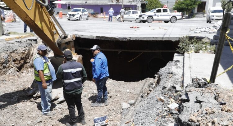 Ante un peligro inminente para la población, el Municipio de Escobedo tomó la decisión de iniciar los trabajos de reparación del socavón formado en el cruce de las calles Santiago Roel y San Jacinto, en la Colonia Santa Lucía.