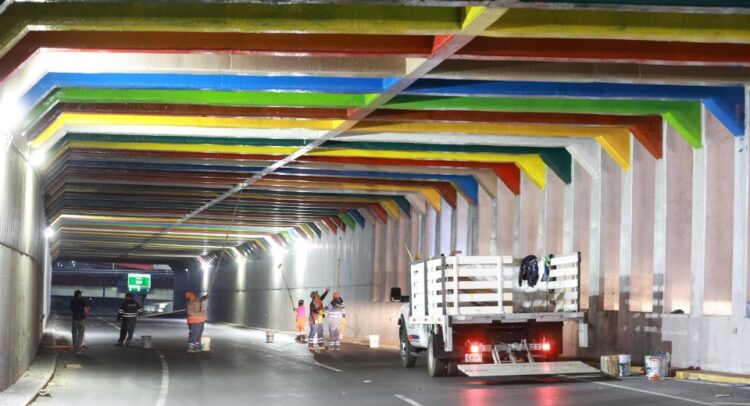 De igual forma se pintaron cordones, banquetas, tubos y vigas en este complejo vial.