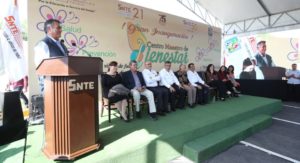 Encabezados por el secretario general del Sindicato Nacional de Trabajadores de la Educación (SNTE), Alfonso Cepeda Salas; el gobernador Jaime Rodríguez Calderón, y la secretaria de Gobernación, Olga Sánchez Cordero, se develó la placa del centro que se ubica en el municipio de Allende.