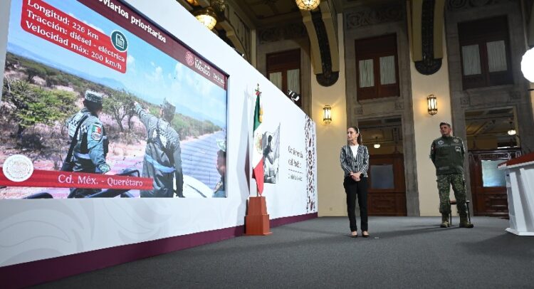 La Presidenta Claudia Sheinbaum Pardo destacó que a siete meses de su gobierno la inversión pública se ha traducido en obras como las nuevas rutas de trenes de pasajeros AIFA-Pachuca, Ciudad de México-Querétaro, así como la vía de carga del Tren Maya, cuya construcción están a cargo del agrupamiento de ingenieros militares “Felipe Ángeles” de la Secretaría de la Defensa Nacional. Mientras que los tramos Querétaro-Irapuato y Saltillo-Nuevo Laredo ya fueron licitados.