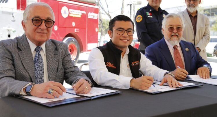 Con propósito de fortalecer las capacidades operativas y logísticas de la corporación de bomberos del municipio de Juárez, el alcalde Félix Arratia Cruz, firmó un convenio de donación de una unidad, con el Patronato de Bomberos de Nuevo León A.C.