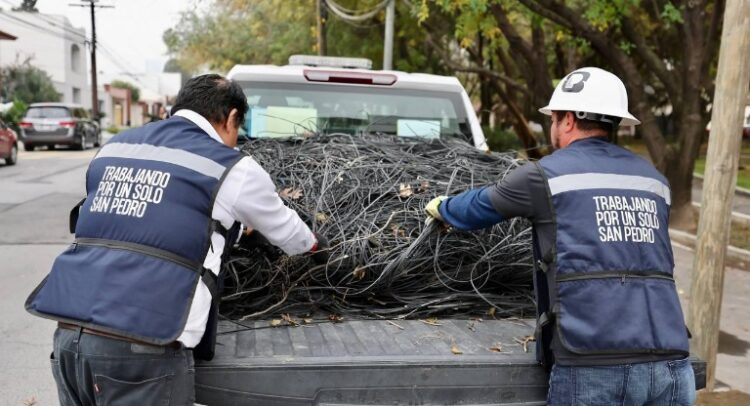 Durante los primeros cuatro meses de la administración, el Municipio de San Pedro Garza García, a través de la Secretaría de Servicios Públicos y Mantenimiento de la Ciudad, ha retirado 50 kilómetros lineales de cableado en desuso.