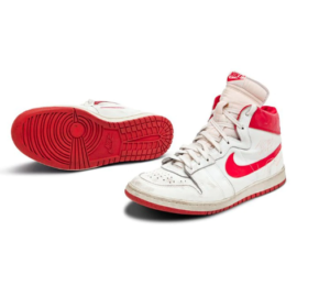 A pesar de no haber alcanzado su precio estimado de 650.000 a 850.000 dólares, dichas zapatillas son históricas: fueron utilizadas por el campeón olímpico en Barcelona 1992 con el Dream Team el 25 de agosto de 1985 en un memorable partido de exhibición que organizó la empresa de indumentaria deportiva estadounidense en Trieste, Italia, en el cual Jordan realizó una volcada con tanta potencia que rompió el tablero de vidrio en pedazos. La zapatilla izquierda subastada tenía un trozo de vidrio incrustado en la suela roja. “Fue un momento icónico en la historia del deporte”, relató Caitlin Donovan, jefa de ventas de carteras y zapatillas de Christie’s en aquella ocasión.