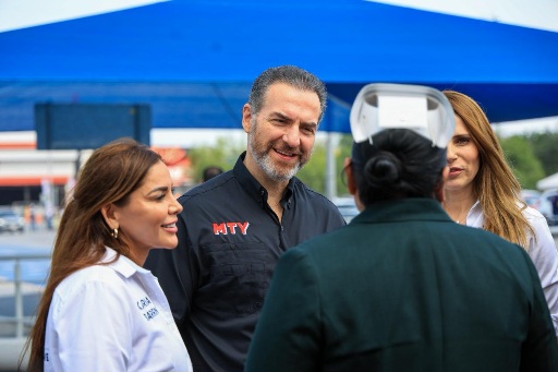 El edil, acompañado por su esposa la presidenta del DIF, Gaby Oyervides, e integrantes del gabinete recorrieron los módulos Drive Thru instalados en el estacionamiento de la Arena Monterrey, así como los que brindaron servicio a los peatones.