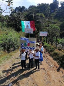 Con orgullo y alegría, estudiantes de primaria conmemoraron el Día de la Revolución con un desfile en la comunidad de El Palo de Lima, San Lorenzo Texmelucan, Sola de Vega, en la Sierra Sur.